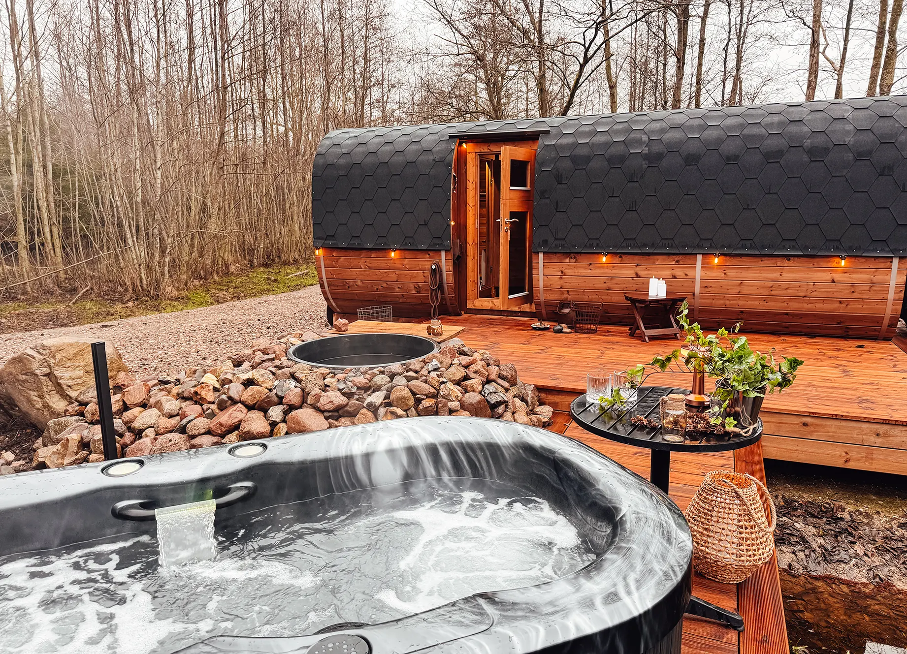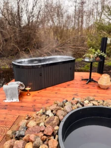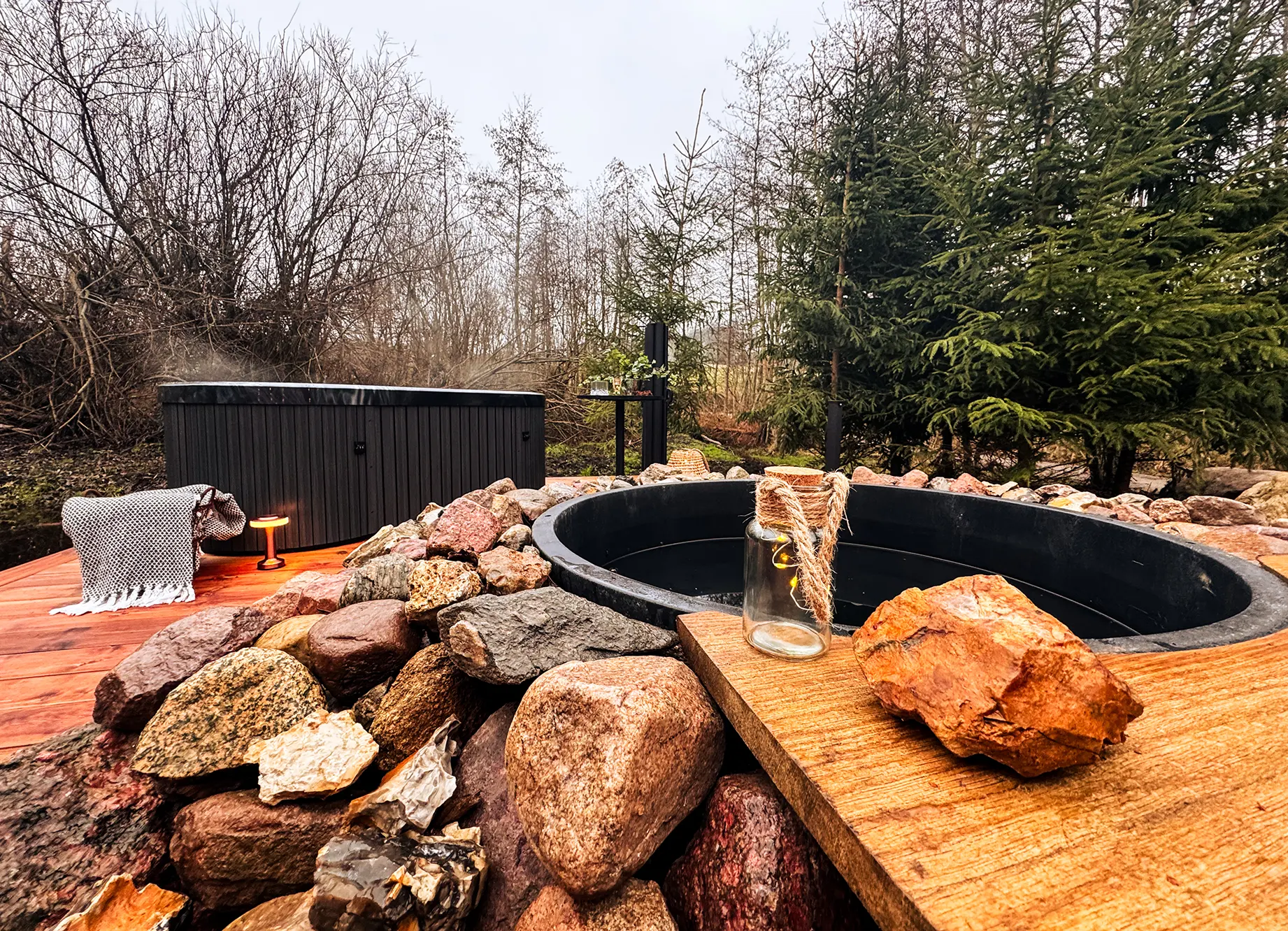 SÆRLIGT: Eget spaområde med jacuzzi-spa og koldtvandskar til rådighed under hele jeres ophold til ubegrænset brug – helt uforstyrret og inklusiv i prisen