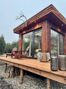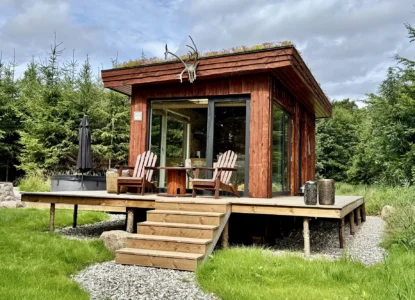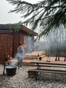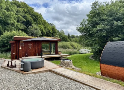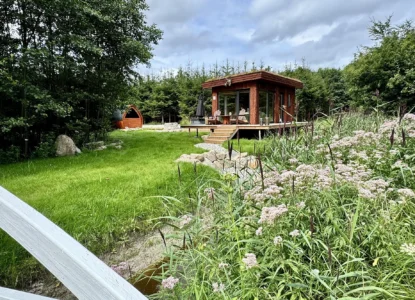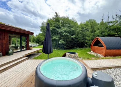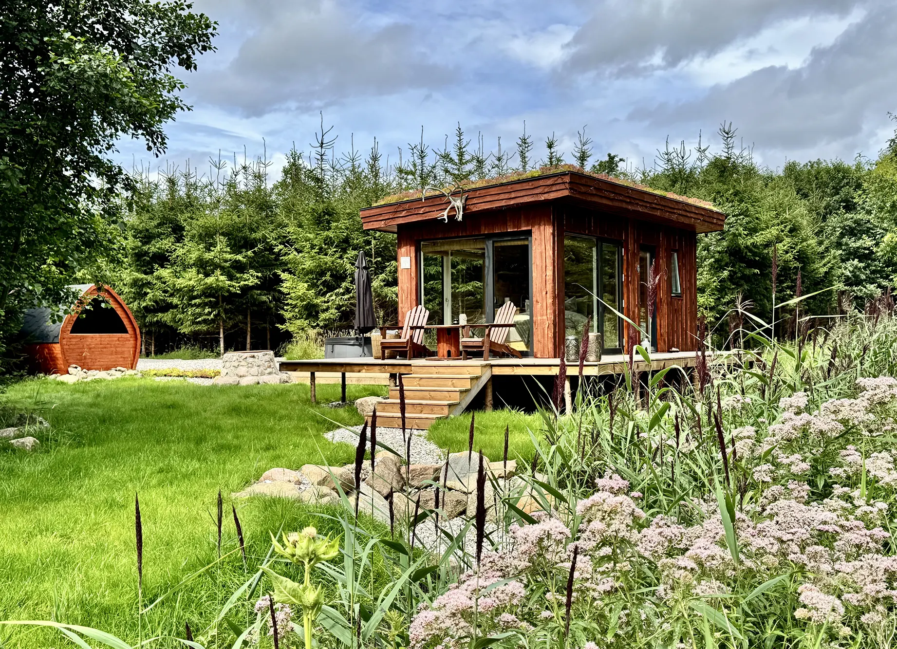 - OBS: prisen er inklusiv eget privat spa, sauna, koldtvandskar og udebruser til fri afbenyttelse under hele opholdet – derfor skal der ikke bookes spa ved booking af SkovPerlen.